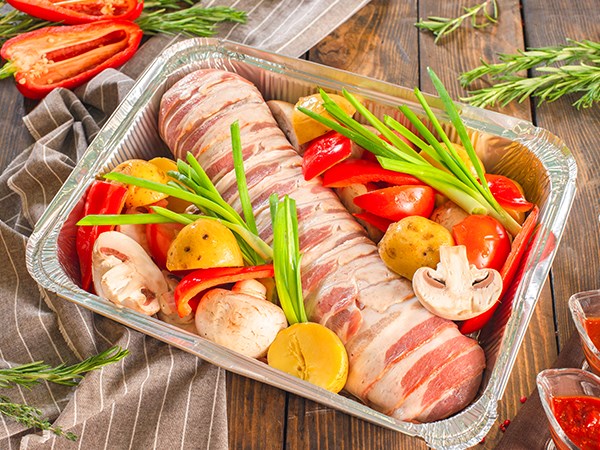 Заказ оформляется за 24 часа. Убрать плёнку, сохранив фольгу. Буженину поставить в разогретую духовку на 180 градусов, не снимая фольгу, и запекать 70 минут до готовности. Снять фольгу и запекать до румяной корочки 15-20 минут. При подаче украсить зеленью. Цена указана за всё блюдо целиком.