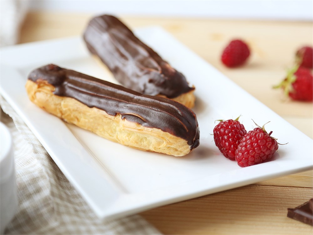 Заварное тесто, крем заварной, шоколадная глазурь.