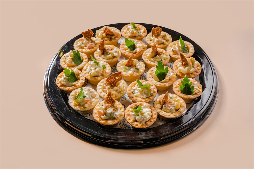 Тарталетки с салатом Оливье с копчёной курицей - 11 шт., тарталетки с салатом с сёмгой - 10 шт.