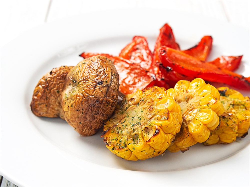 Початок кукурузы, болгарский перец, шампиньоны, кабачок.