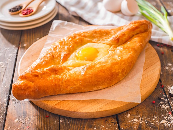 "Лодочка" из теста с сыром сулугуни и яйцом.