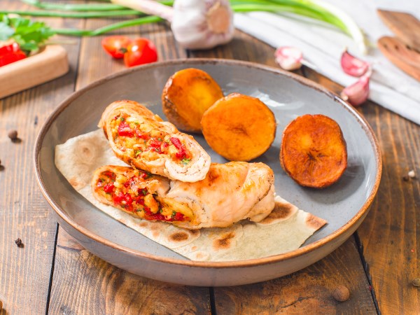 Куриное филе, печёный болгарский перец, адыгейский сыр, чесночная паста, сладкий соус чили, соус кимчи, кинза, лаваш. Доставляется с картофелем на мангале.