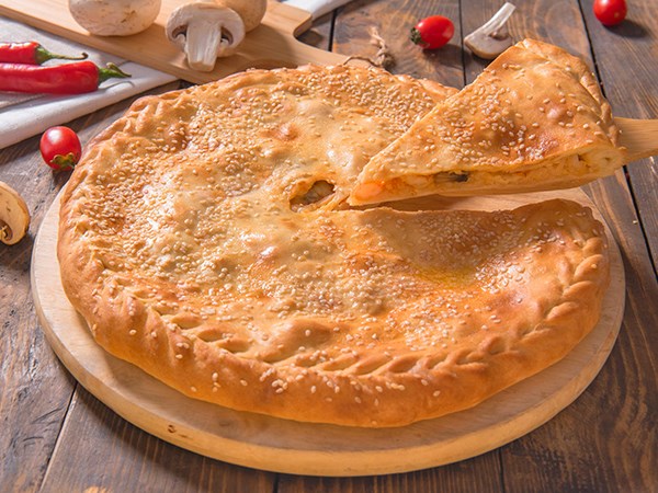 Тигровые креветки, рис, шампиньоны, кальмар, сливки, сыр моцарелла, семена кунжута.
