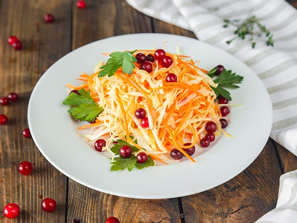 Капуста белокочанная, французский соус, морковь, клюква, петрушка.
