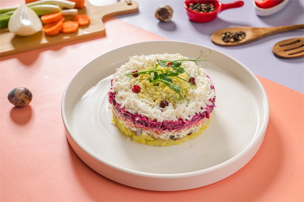 Филе сельди слабосолёное, куриное яйцо, свёкла, морковь, майонез,