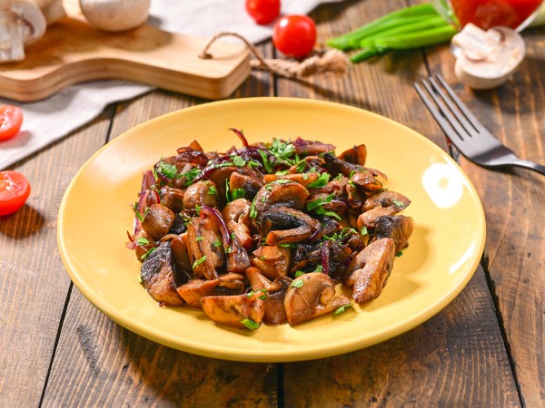 Жареные с луком шампиньоны в соевом соусе Доставка