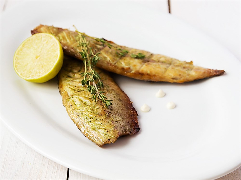 Скумбрия - 165г, лимон - 23г, оливки - 8г.