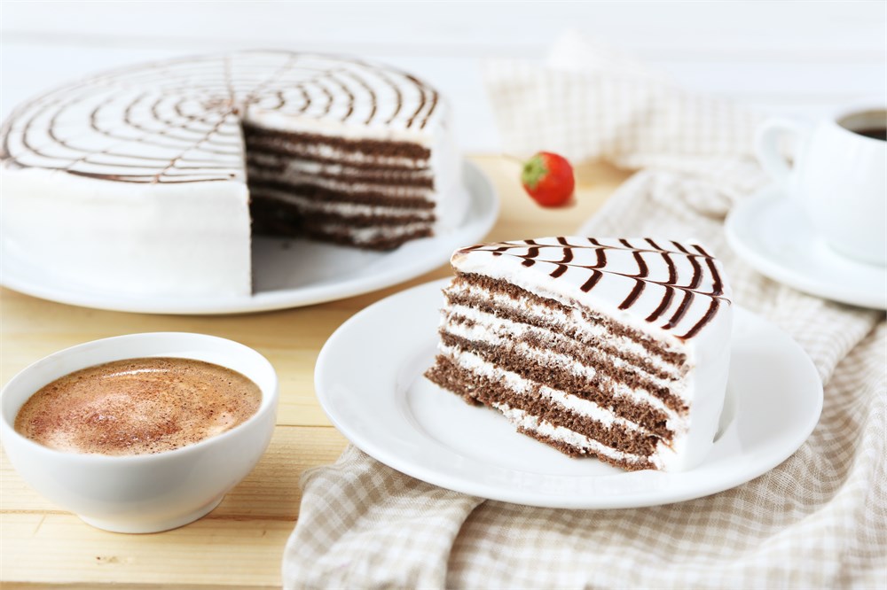 Половинка торта. Бисквитные коржи из молотой черемухи, пропитанные легким сметанным кремом.