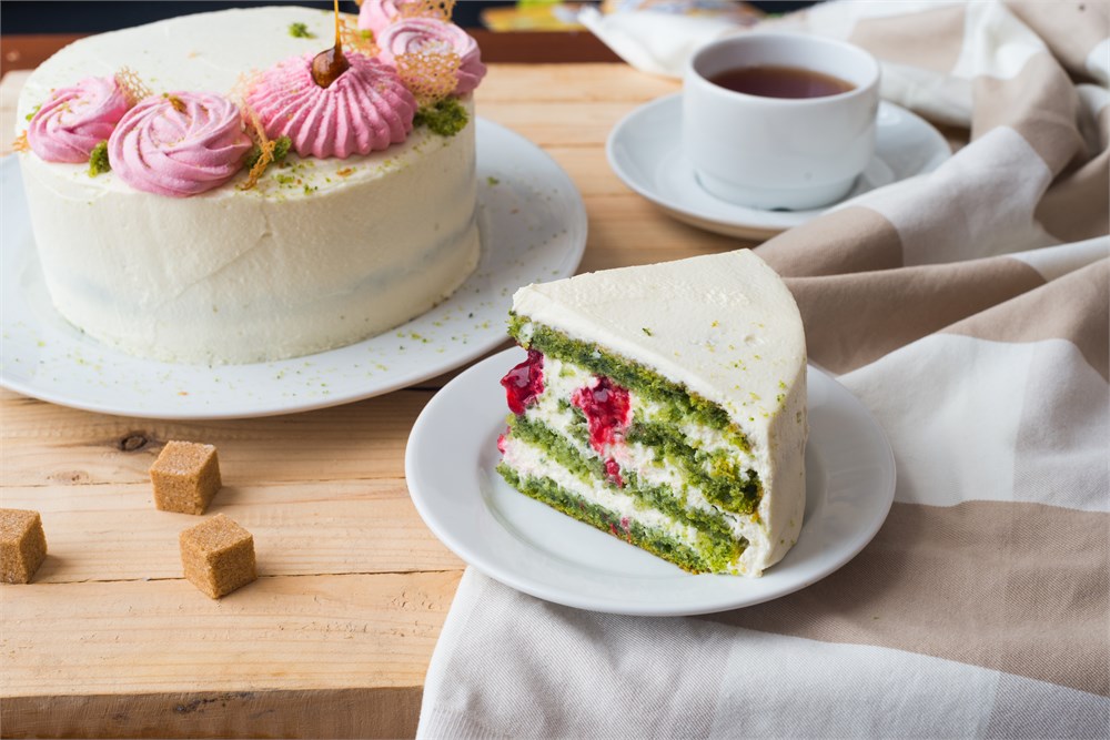 Половинка торта. Лёгкое сочетание коржей из шпината и крема на основе маскарпоне с лёгкой кислинкой малины.
