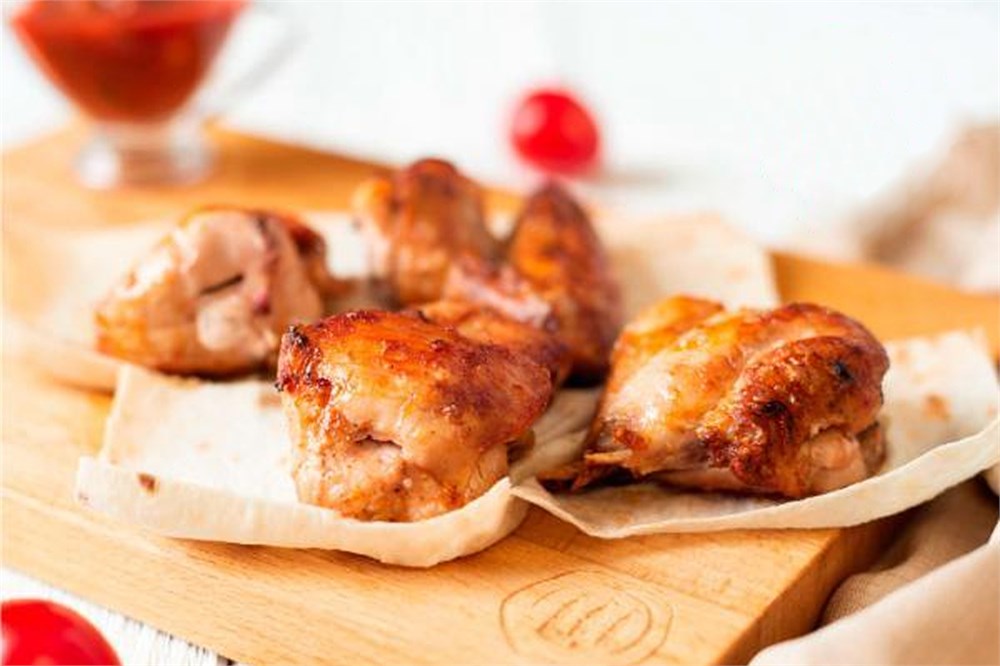 Шашлык из курицы на кости - 245 г, соус сацебели - 30 г, лук - 25 г, лаваш - 10 г.